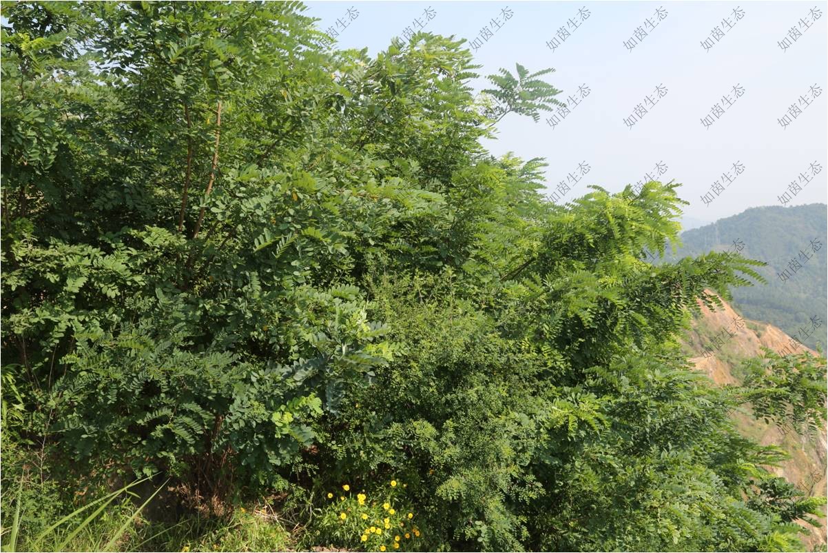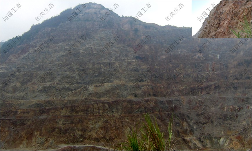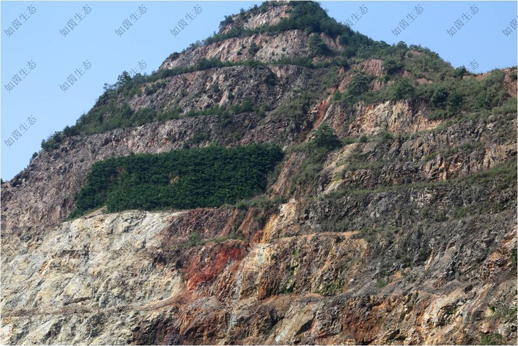 永平铜矿隶属于江西铜业股份有限公司,矿区总面积13.16km2。该矿采用露天、地下联合开采方式,其中露天开采已经30年,露天开采境界面积约178.2hm2。本次工程内容主要涉及历史遗留的采坑边坡的植物护坡与生态恢复。采坑边坡为中风化岩质边坡,坡度60-90°,局部呈倒坡状。岩性主要是蚀变的矽卡岩,其次为硅化、碳酸盐化、绿泥石化等,岩层构造以层状为主,透镜状次之,浸入体主要为中酸性岩体,含有大量铜硫矿,长期裸露后岩层已成为酸性岩,表面附着有大量酸性物质,而且矽卡岩局部已崩塌滑坡,形成含有较大岩块的碎石流坡,生态治理难度非常大。我司采用自主开发的专利技术,包括土壤改良,排水疏导,微地形种植槽营造和滴灌等组合技术,有效恢复了采坑边坡植被,植被护坡效果显著。