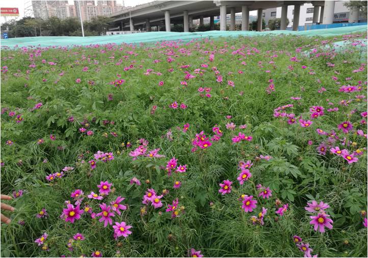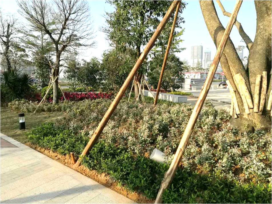该项目位于深圳前海片区,主要包括梦海大道、怡海大道、前湾一路至前湾二路等道路及周边景观环境提升。由于该项目所在区属于典型的滨海生境,土壤盐碱化,同时,常年滨海盐风、盐雾沉降于景观植物上,造成生理脱水,易枯萎渍死,景观效果差,营造困难。此外,本工程属于应急工程,仅一个月施工期,进一步增加了工程难度。