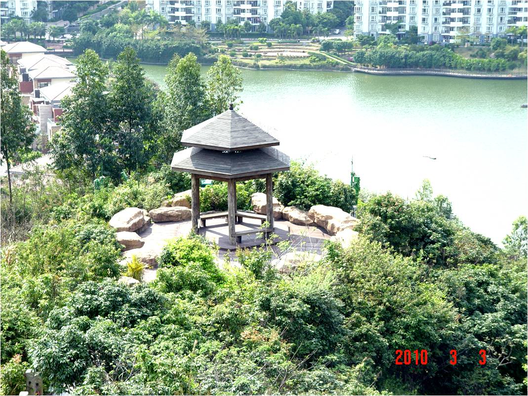 深圳·星河丹堤凭借其得天独厚的原生态湖山资源及优越的地理位置,让建筑最大限度地融入自然,使建筑空间与生态资源完美地自然结合。工程涉及花坛、园趣、庭院景观、湖岸水景、小品、亭台等,整体景观色调自然、淳朴,创造出一种休闲宜居的环境。