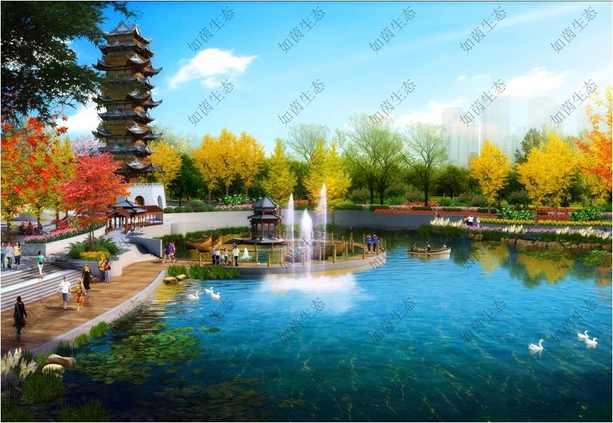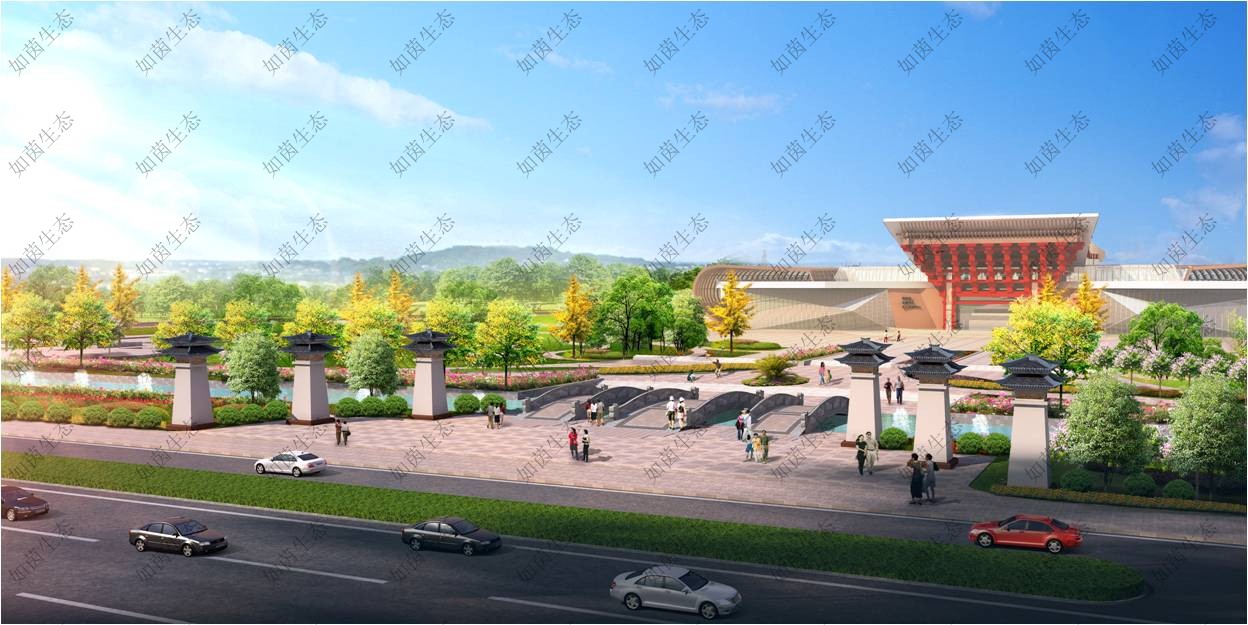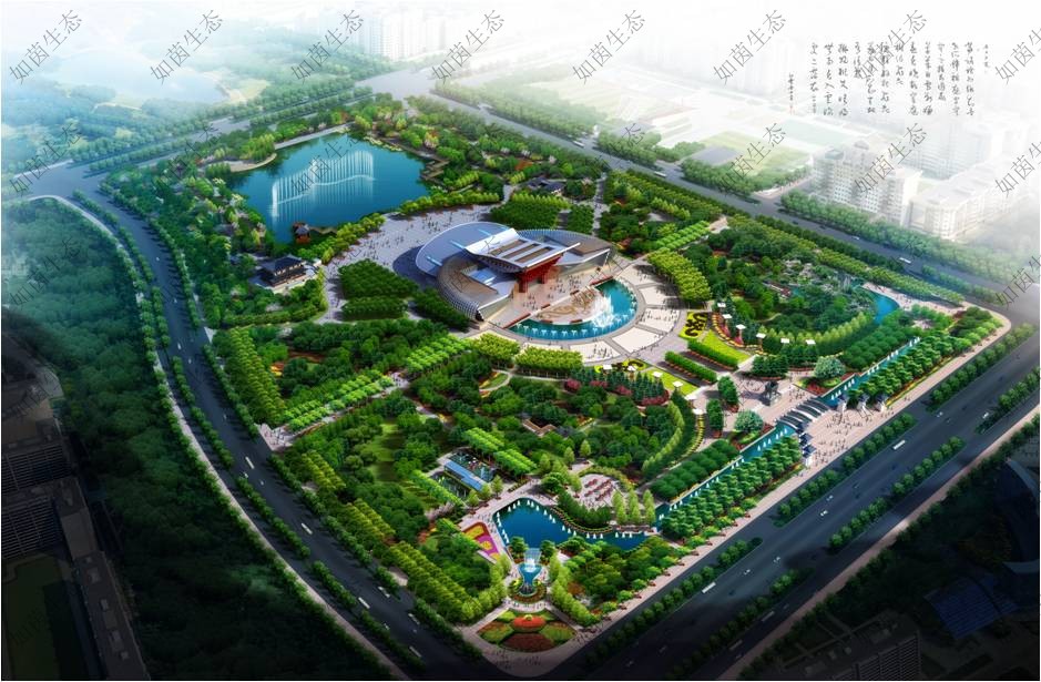 本项目为一中型城市公园,总面积17.5万平方米。设计内容包括人工湖水面积约2.3万平方米,硬质铺装约4.2万平方米,绿化面积约11万平方米。本次设计将山水景观、休闲广场、文化娱乐中心等设施融为一体,特别是以晋国历史文化为背景内容的一系列殿堂楼阁、廊亭台榭,遍布公园四周,突出显示了曲沃的悠久历史和晋文化的博大精深。进一步丰富了“晋园”的人文内涵,提升了文化品位。