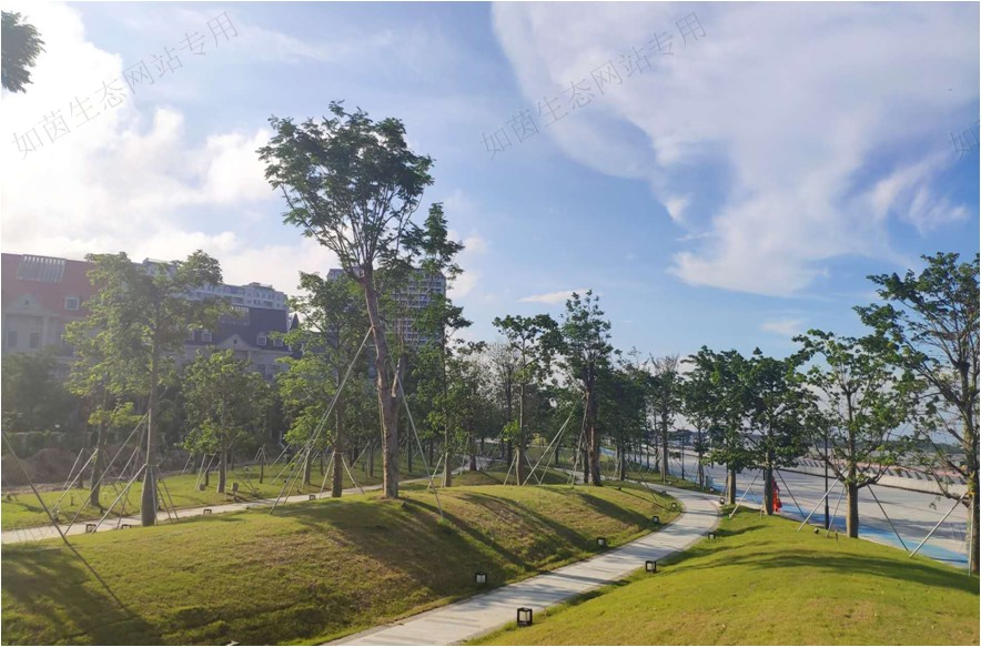 该项目位于金湾区机场东路东侧,包括园路工程、景观挑台工程、停车场、水景等景观工程和乔木、地被种植等绿化工程,建设占地面积约 9.6 万㎡,造价4751万元施工过程中经历了2018年超强台风山竹的“洗礼”和考验,如今,珠海机场周边沿海花海成带,生机盎然