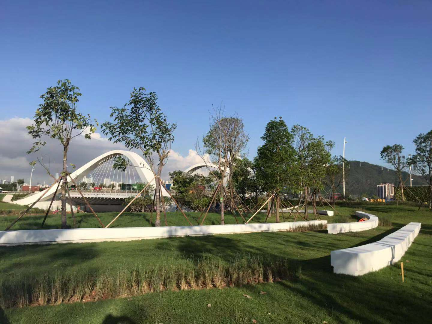 该项目位于深圳市南山区前海自贸区前湾河公园1号桥至3号桥间靠文创小镇一期及2号桥周边,占地面积约3.8万平米的园林工程。工程内容包含土方、绿化、园建、曲线景墙、给排水、电气、海绵城市建设等内容。