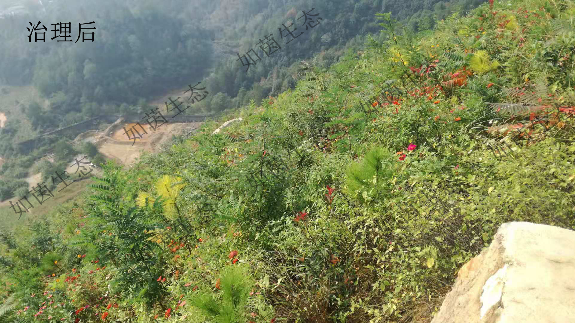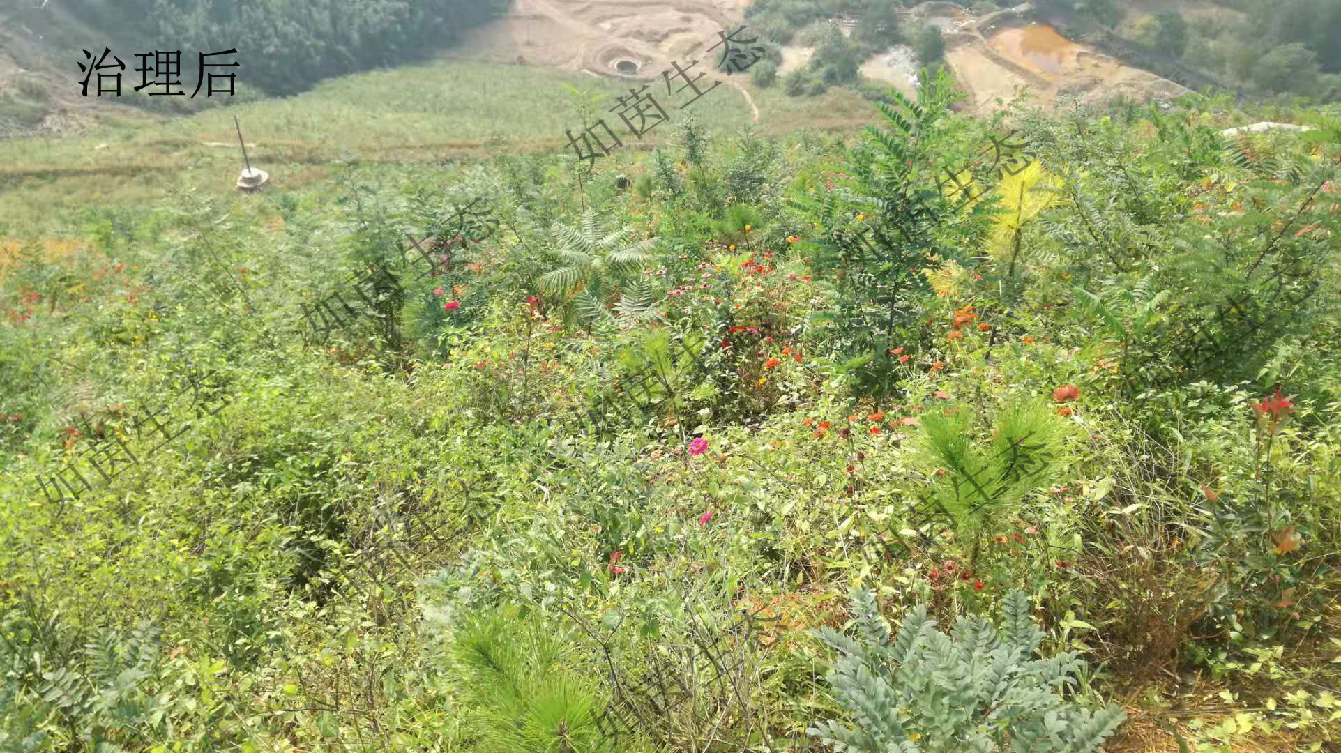 该项目位于江西铜业股份有限公司永平铜矿内,治理区域面积9万㎡,项目区裸露,坡面凹凸不平,渣石多,土壤酸化严重,极度贫瘠,严重限制植被和生态恢复,若不进行综合治理,存在污染扩散、水土流失加剧和边坡失稳等隐患。在我司技术人员的努力下,土壤结构得到改良,并建立起自然演替的生态系统,取得了良好的综合治理效果。