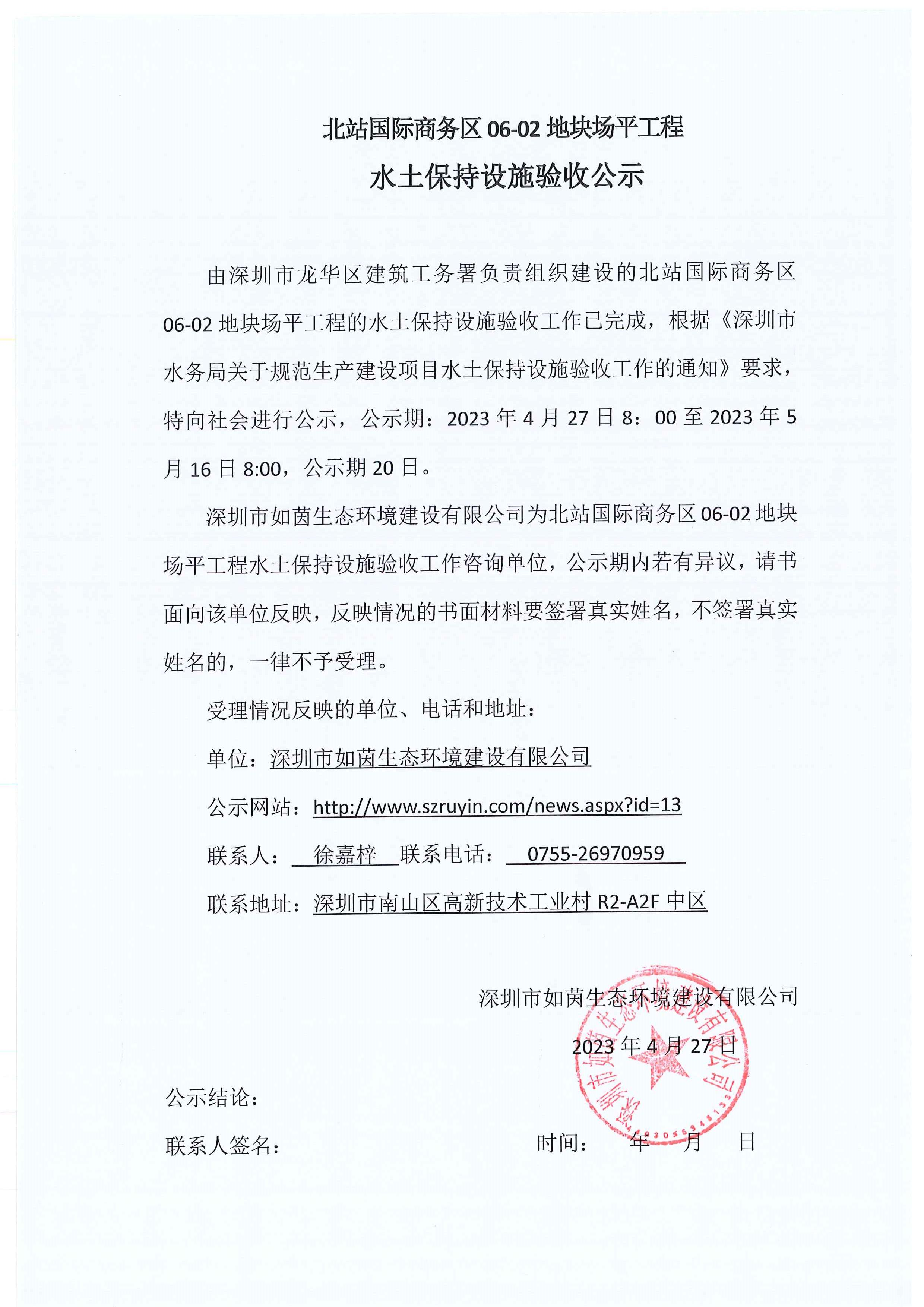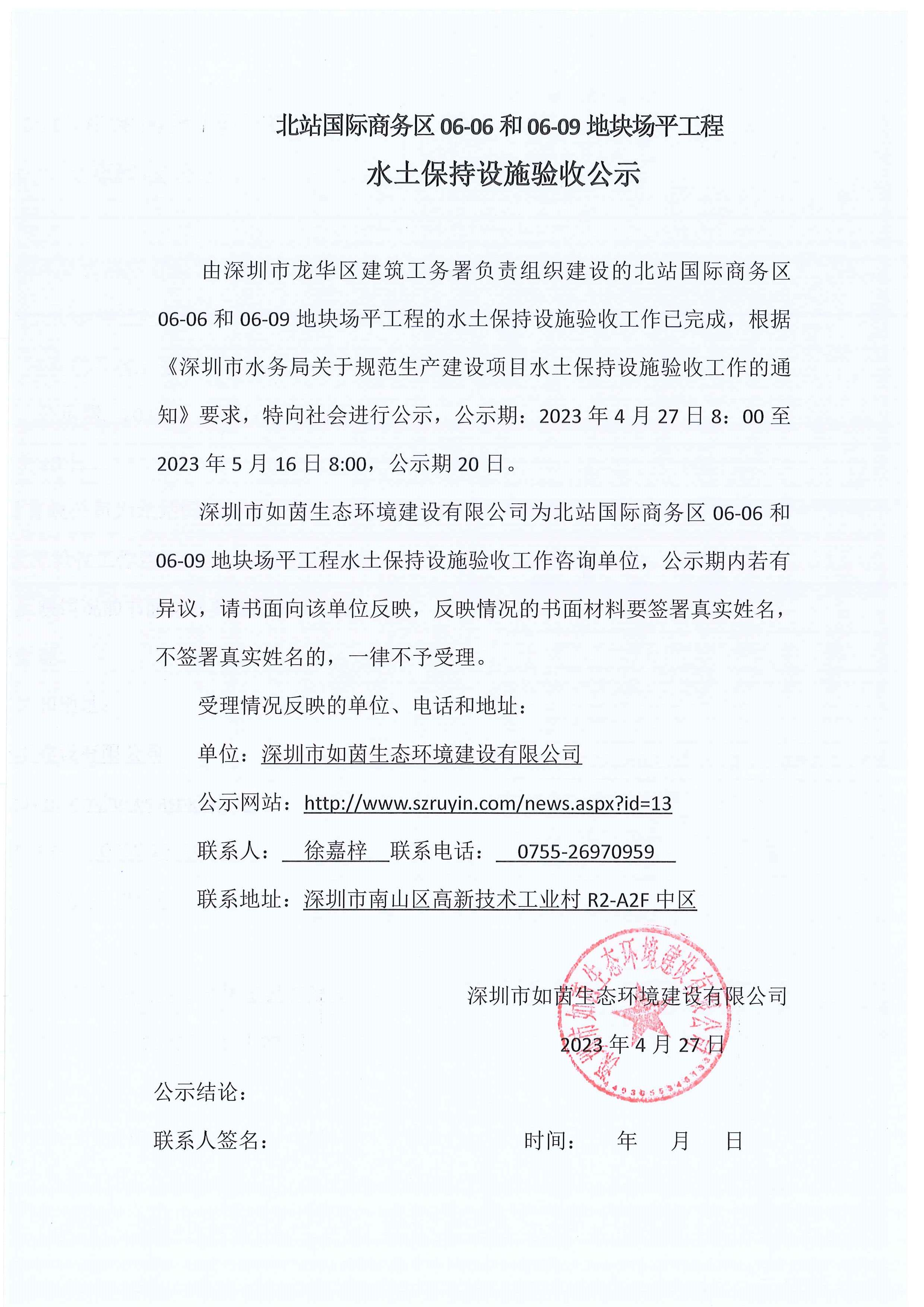 查看更多 >>由深圳市龙华区建筑工务署负责组织建设的北站国际商务区06-04地块场平工程的水土保持设施验收工作已完成,根据《深圳市水务局关于规范生产建设项目水土保持设施验收工作的通知》要求,特向社会进行公...