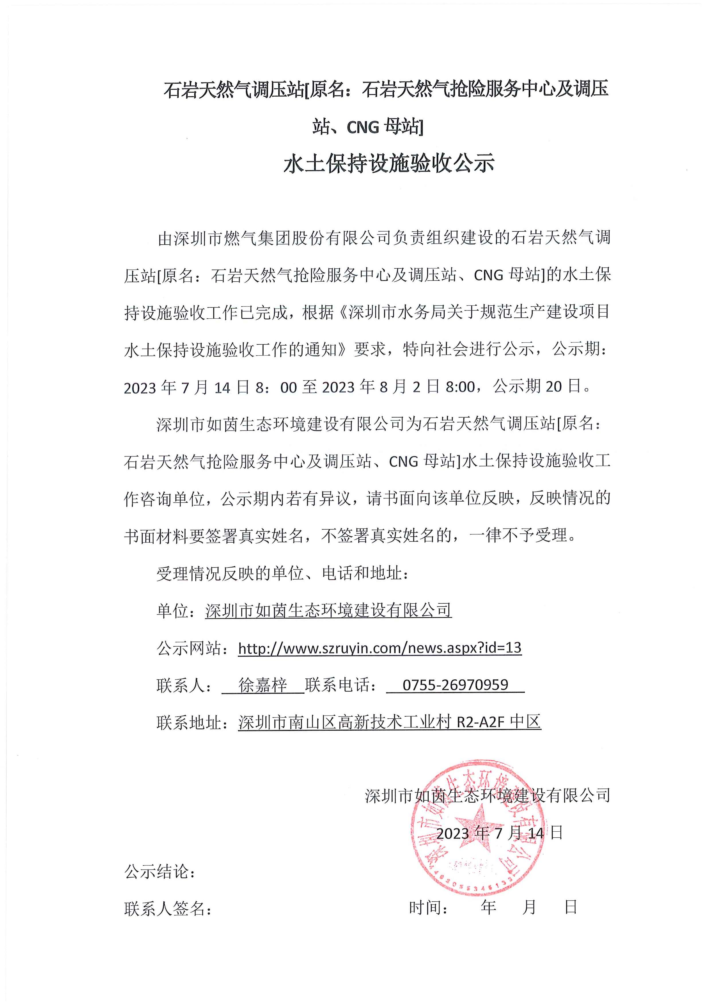 查看更多 >>由深圳市燃气集团股份有限公司负责组织建设的石岩天然气调压站[原名:石岩天然气抢险服务中心及调压站、CNG母站]的水土保持设施验收工作已完成,根据《深圳市水务局关于规范生产建设项目水土保持设施...