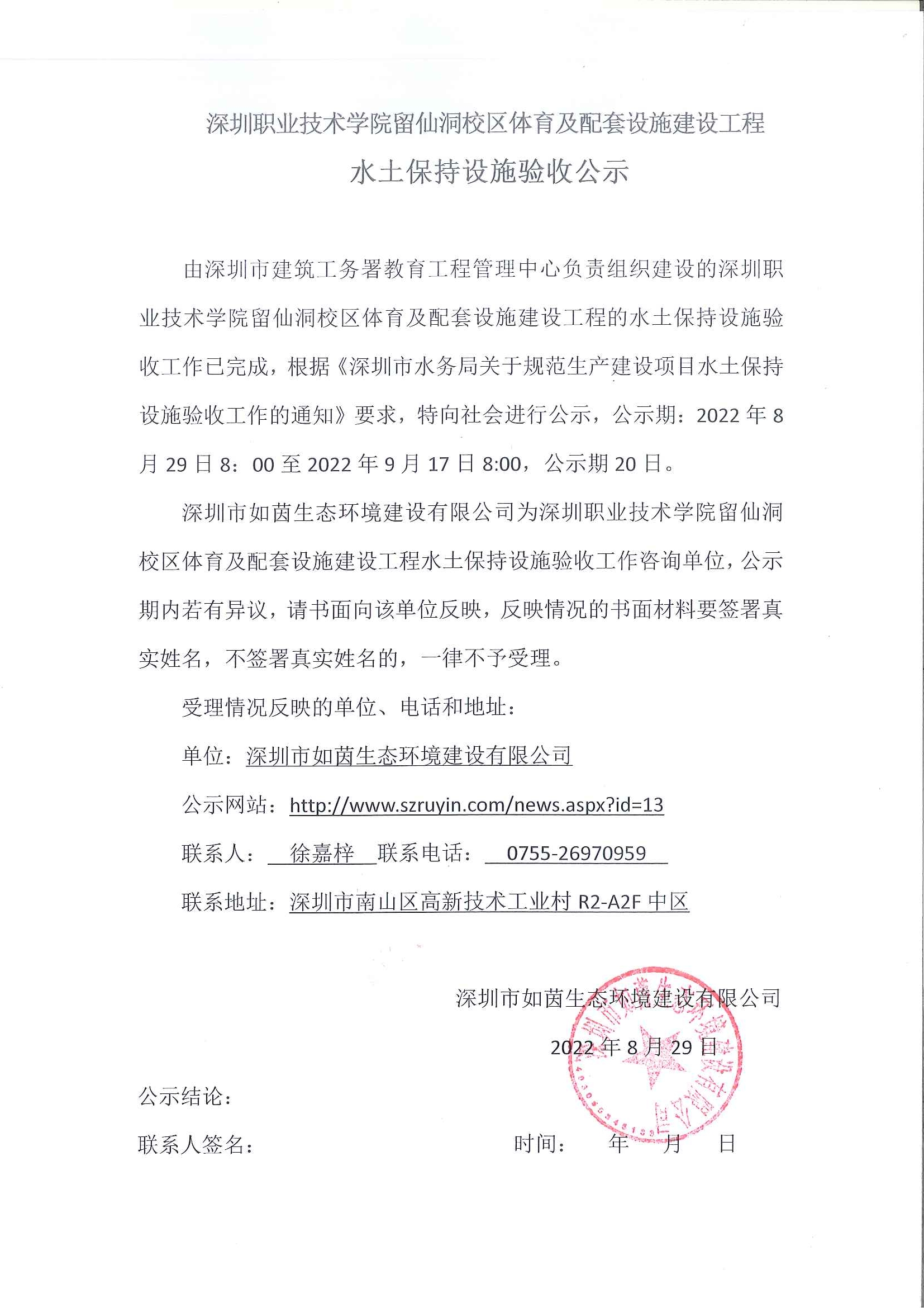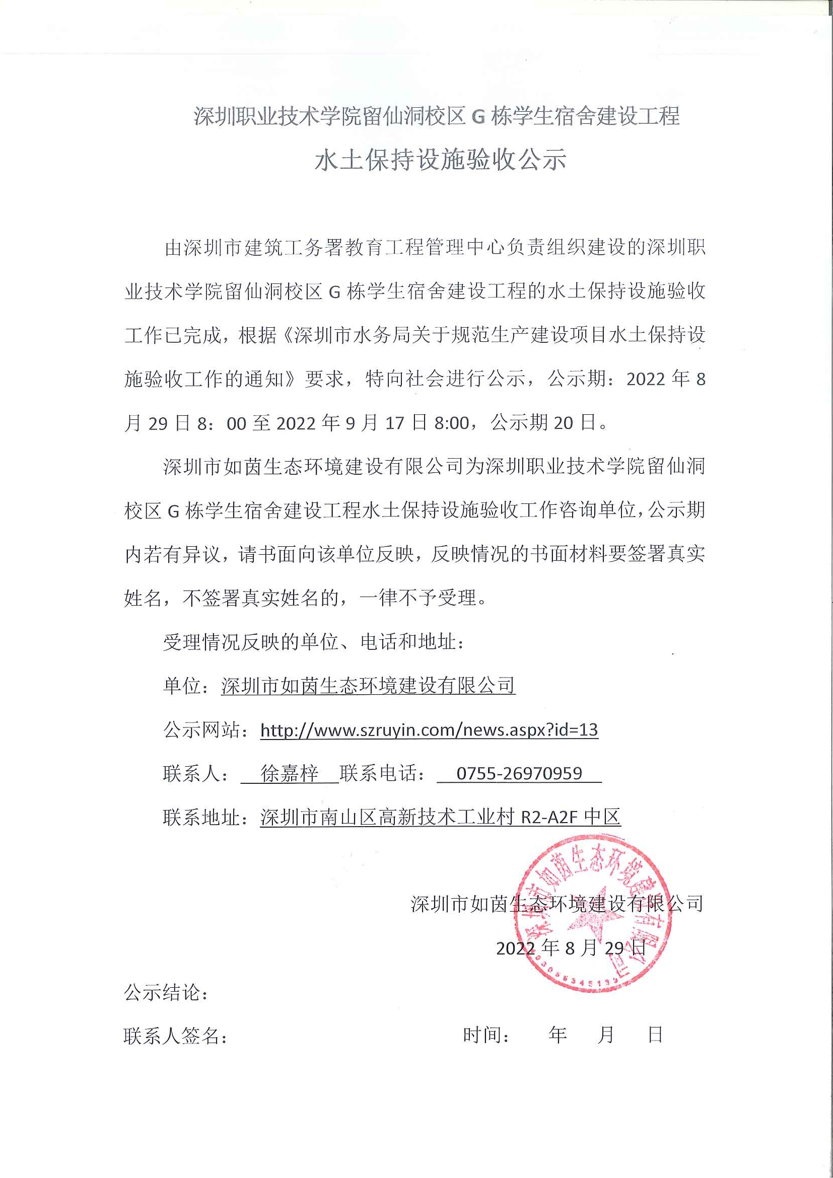 查看更多 >>由深圳市建筑工务署教育工程管理中心负责组织建设的深圳职业技术学院留仙洞校区G栋学生宿舍建设工程的水土保持设施验收工作已完成,根据《深圳市水务局关于规范生产建设项目水土保持设施验收工作的...