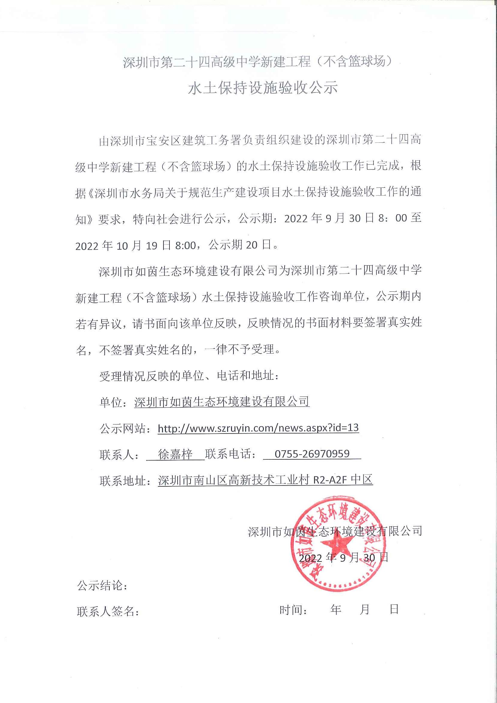 查看更多 >>由深圳市宝安区建筑工务署负责组织建设的深圳市第二十四高级中学新建工程(不含篮球场)的水土保持设施验收工作已完成,根据《深圳市水务局关于规范生产建设项目水土保持设施验收工作的通知》要求,特...