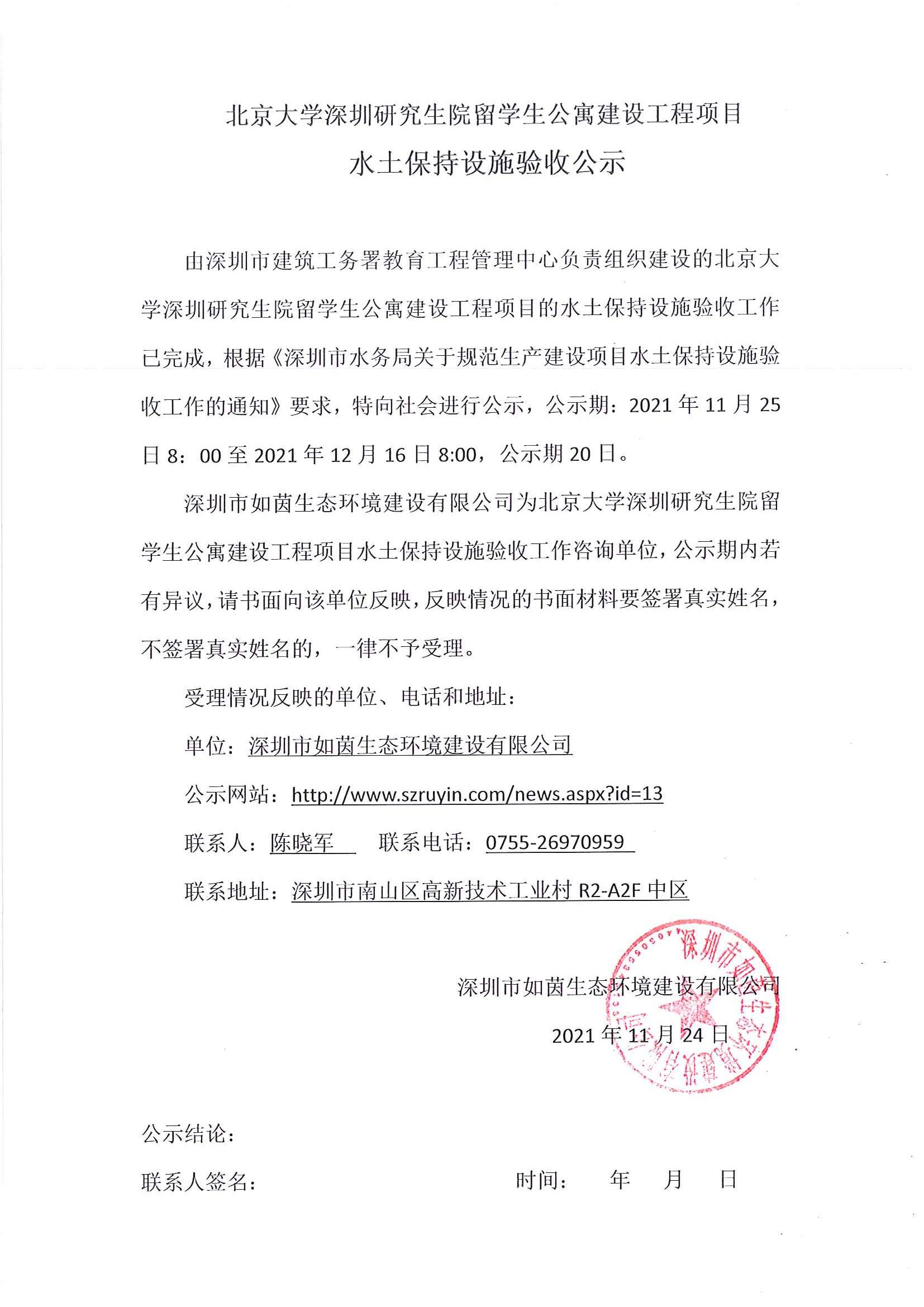 查看更多 >>由深圳市建筑工务署教育工程管理中心负责组织建设的北京大学深圳研究生院留学生公寓建设工程项目的水土保持设施验收工作已完成,根据《深圳市水务局关于规范生产建设项目水土保持设施验收工作的通...