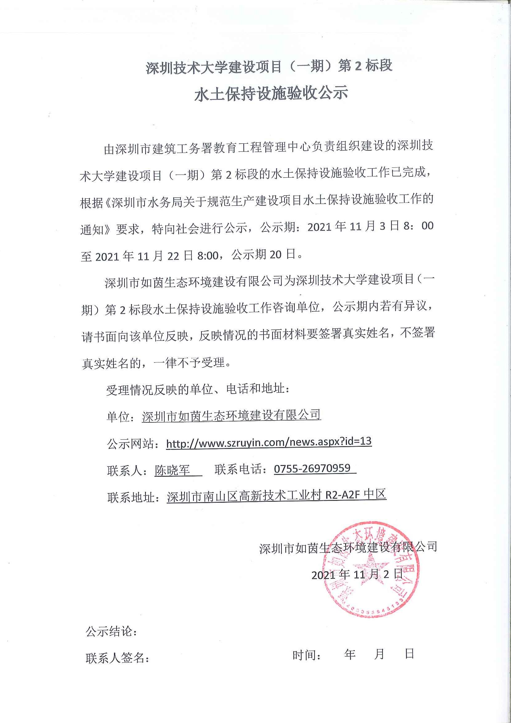 查看更多 >>由深圳市建筑工务署教育工程管理中心负责组织建设的深圳技术大学建设项目(一期)第2标段的水土保持设施验收工作已完成,根据《深圳市水务局关于规范生产建设项目水土保持设施验收工作的通知》要求,特...